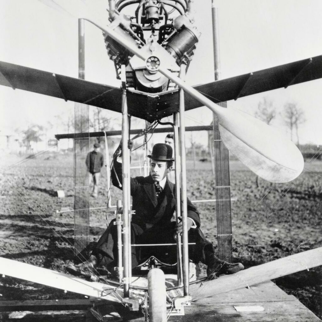 Alberto Santos-Dumont in 1907, aboard his aeroplane numbered ’15’. Image courtesy of https://www.thejewelleryeditor.com/images/alberto-santos-dumont-in-his-aeroplane/